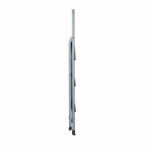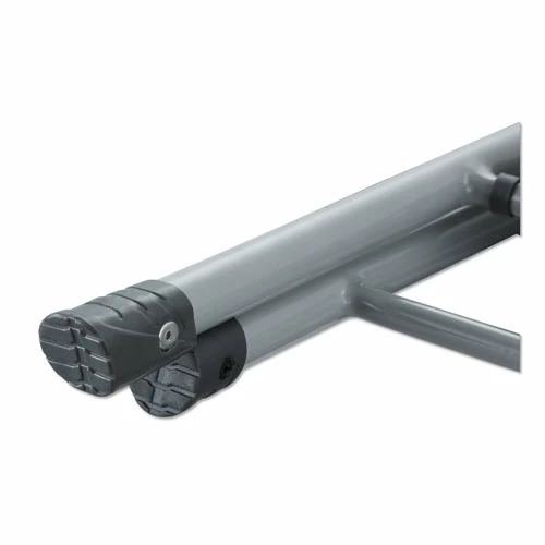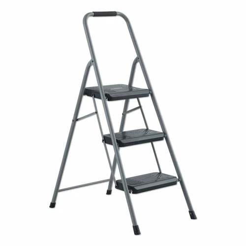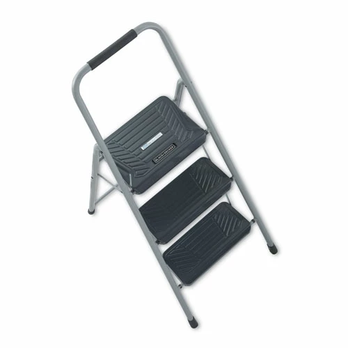 Folds flat for easy storage and portability. It is rated for up to 200 lbs and features slip resistant rubber feet and large platform top step. WARNING: Metal ladders conduct electricity. Do not use where contact may be made with live electrical circuits.