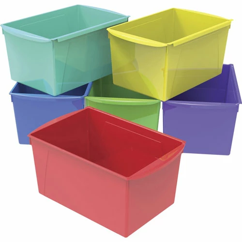 Book bins feature a versatile design that can be used on 15″ deep shelves and desktops, or turned sideways to fit into narrow 12″ shelves and bookcases. They fit scrapbook paper, letter-size files and folders, and large magazines. Integrated carry handles allow you to easily transport your supplies from room to room.