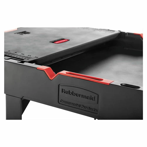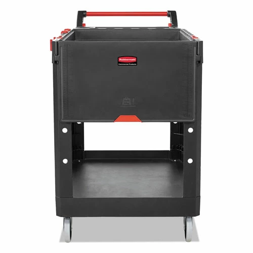The heavy-duty adaptable cart provides superior versatility for tackling whatever task is at hand. Crafted of structural foam, this rolling service and utility cart can support up to 250 lb per shelf while reducing the need for time-consuming user modifications Features a variety of integrated features including an ergonomic adjustable handle with four positions for maximum comfort, a flip-up shelf, a slotted rim for small tool storage, two snap-in hooks for wrapping extension cords and locking casters to keep the cart stable during use.