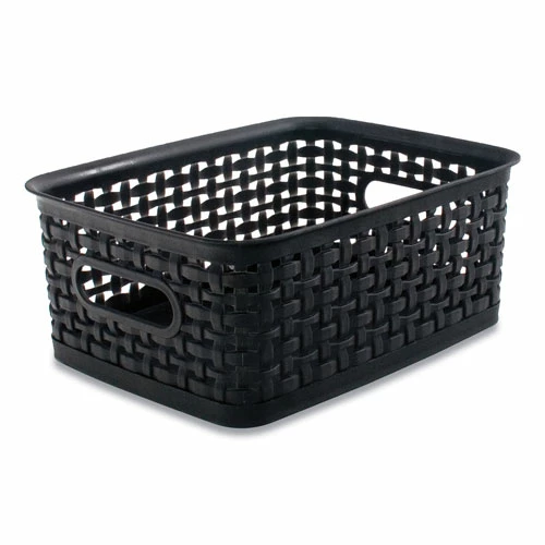 Perfect for storing a variety of office or household supplies. This sturdy plastic bin is easy to clean, features two handles for easy transportation and has a stylish design.