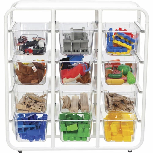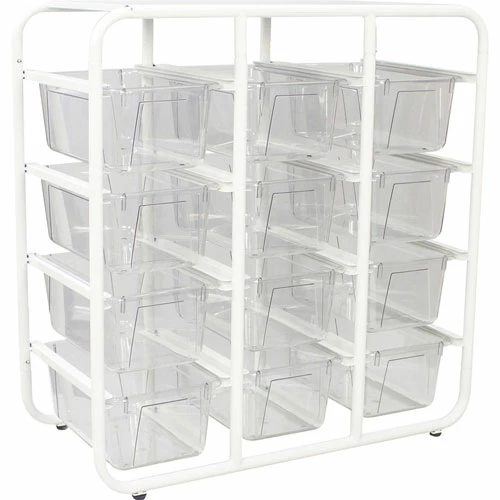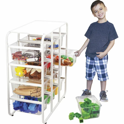 Storage rack offers a stand-alone storage solution to keep you organized. Flat top provides an extra storage option for a variety of supplies. Unbreakable bins handle drops, tumbles and tosses you throw at them. Crystal-clear material helps you easily identify contents from afar. Standard-size bin fits into most classroom furniture. Storage rack is perfect for holding crafts, art supplies, shoes and more.