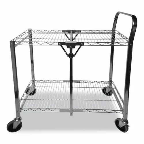 Storage space and location is the number one user issue with current cart designs. Our Bostitch® Stowaway™ Folding Carts have a patented folding design that stores away in 4x less space! An optional wall mount bracket allows for easy storage behind a door or in an open space. It folds and unfolds in a fraction of a second with secure safety locks for the strongest durability. Dual shelves provide 884 (small cart) or 1324 (large cart) square inches of storage space and can hold up to a massive 250 pounds of storage capacity. Durable finish for easy cleaning and lifetime durability with medical style no-mar swivel wheels for quiet operation and easy maneuverability.