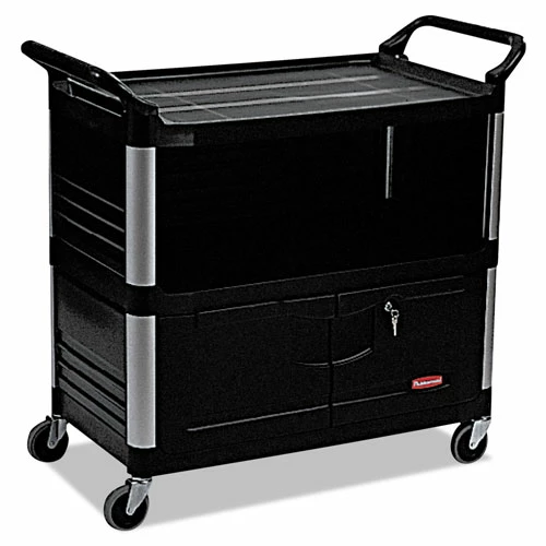 For use in hospitals, health care centers, labs and hotels/motels. Sized to carry large loads. Rounded corners won’t damage walls. Upscale appearance is ideal for institutional, warehouse or front office use. Large textured shelves hold a variety of tools and supplies. Durable, structural web construction resists scratches, chips and rust. Lightweight, easy-to-handle design. Quiet, nonmarking casters. Comfortable, rounded handles featuring molded-in storage bins for small items.