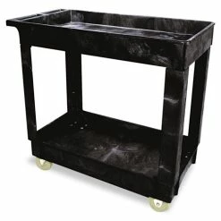 The Rubbermaid Commercial Xtra Utility Cart is ideal for providing table service or similar tasks. With shelves and an enclosed design, it is easy to create nice displays for customers. Each shelf has e a 100-lb. capacity, while 4-inch swivel casters make it easy to maneuver.