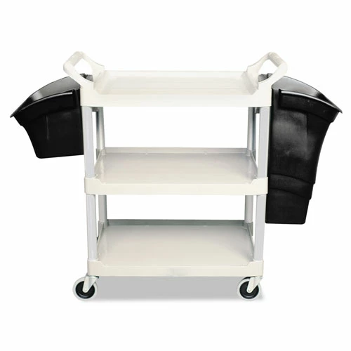 The Rubbermaid Commercial Xtra Utility Cart is ideal for providing table service or similar tasks. With shelves and an enclosed design, it is easy to create nice displays for customers. Each shelf has e a 100-lb. capacity, while 4-inch swivel casters make it easy to maneuver.